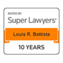 Louis Battista is board-certified in Civil Trial Law by both The Florida Bar and the National Board of Trial Advocacy. Such a distinction identifies Lou as an expert or specialist in his field. He is AV rated, the highest rating given by Martindale-Hubbell Law Directory, which signifies that a lawyer has reached the pinnacle of professional excellence and is recognized for the highest levels of skill and integrity. Lou has been selected as a member to the American Board of Trial Advocates (ABOTA), a national organization that seeks members with the requisite trial experience, high moral character and honorable reputation. He has been recognized by Florida Trend Magazine, Florida’s Super Lawyers and South Florida’s Legal Guide as being among the elite trial attorneys in Florida.